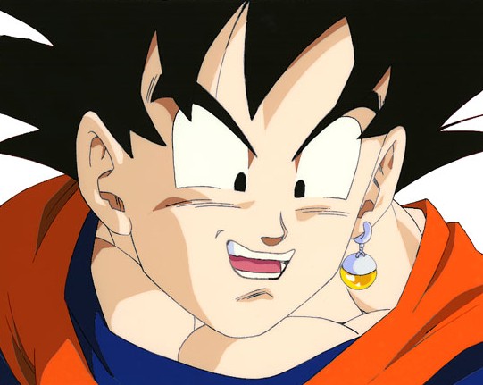 Goku's wearing one Potara in this cel, which means he's on the road to fusing. He's also apparently secure enough in his self-image to not mind a dangly earring....