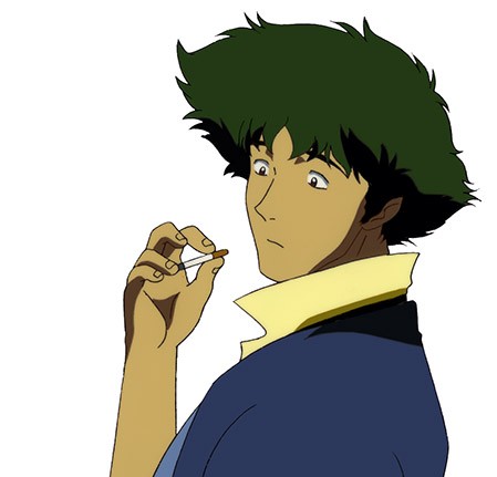 Spike seems a little suspicious of his smoking materials. I'd be wary too -- the way things are going now the only place people of Spike's era will see cigarettes is in a museum. That coffin nail can't be any too fresh!