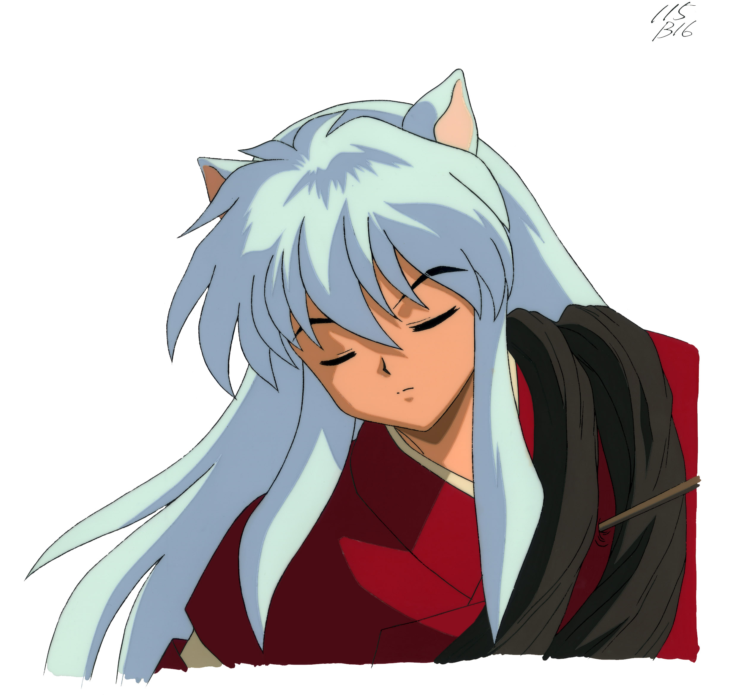 From the first episode, when Inuyasha is still bound to the ancient tree by Kikyo's arrow. I really like his expression in this cel, and the drawing is far more elegant and careful than later in the series.